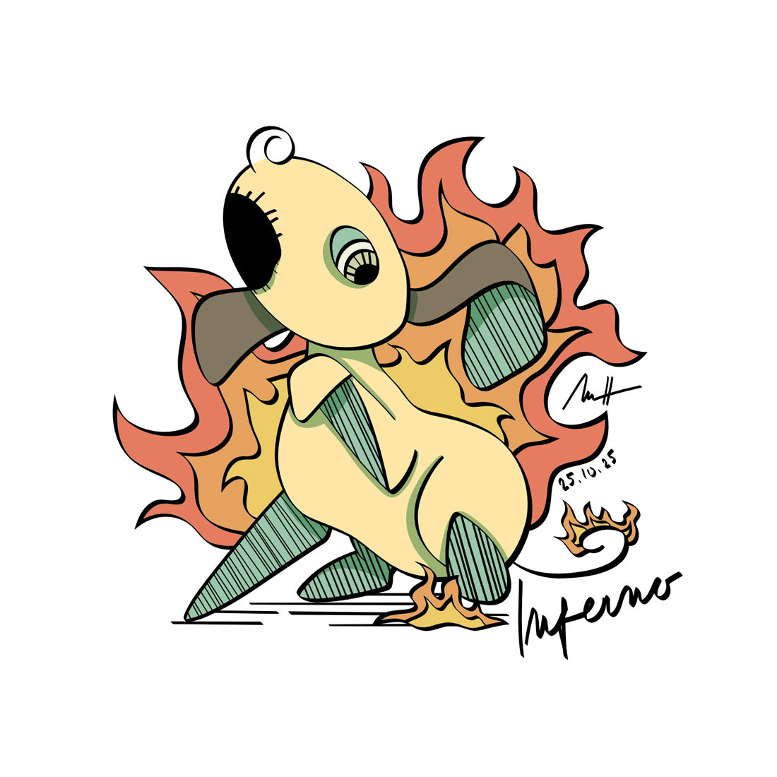 This personal project features Inky, a derpy puppy character I created during the Inktober 2025 drawing challenge, exploring various themes through daily illustrations.